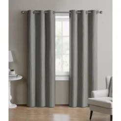 Kate Aurora Modern Living 2 Pack Textured Woven Light Filtering Grommet Top Window Curtain Panels